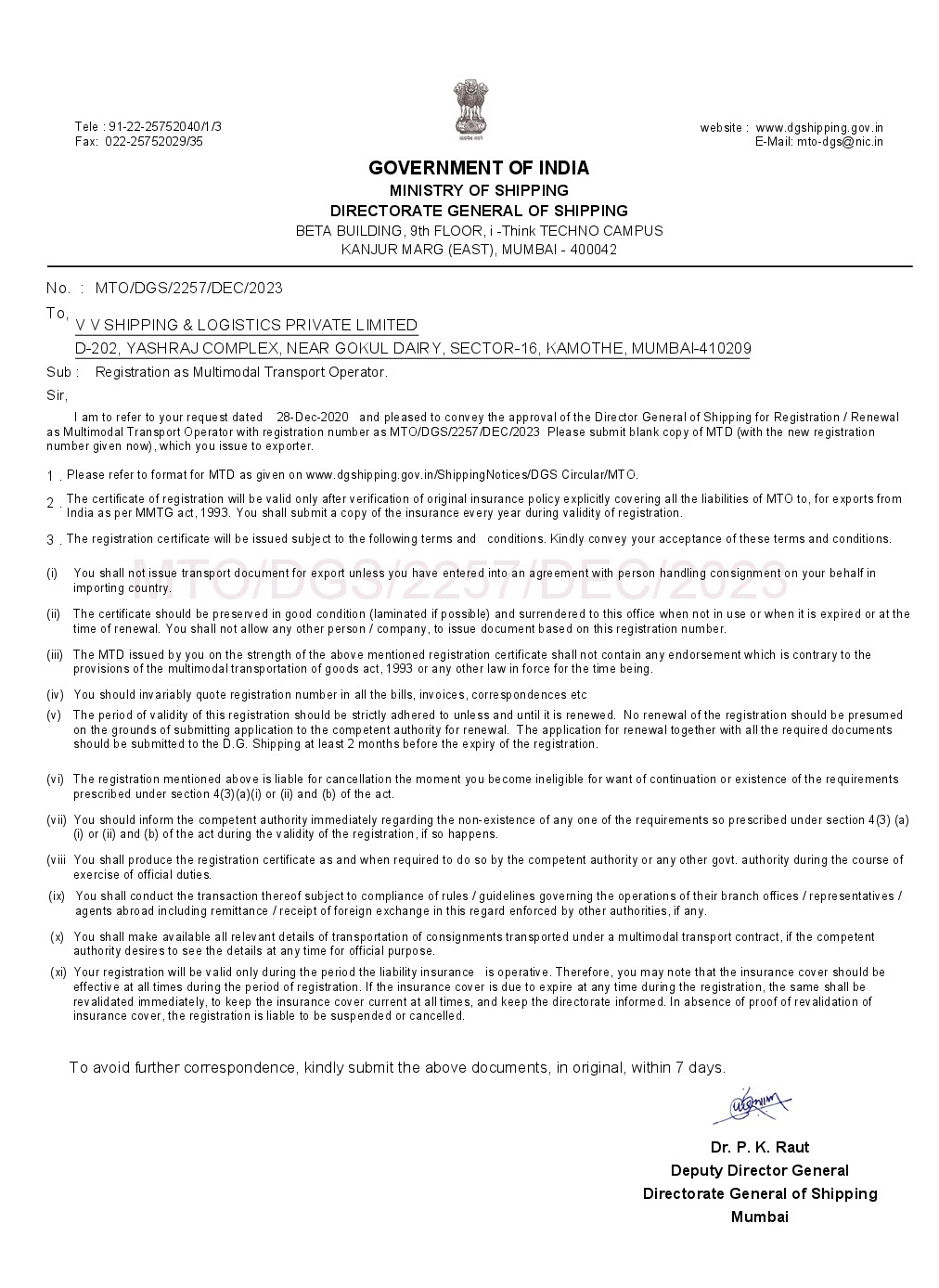 DG MTO APRROVAL LETTER
